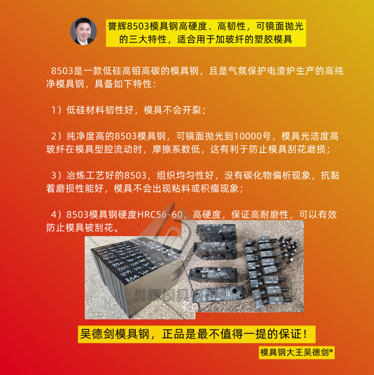99%的人不管買(mǎi)過(guò)多少次模具鋼,都會(huì)踩他自己永遠(yuǎn)想不到的坑。譽(yù)輝模具鋼成立17年來(lái),85%是老客戶(hù),連續(xù)8年無(wú)客戶(hù)退貨。京瓷連續(xù)6年,采購(gòu)譽(yù)輝模具鋼。不僅不踩坑,同樣的錢(qián)還能買(mǎi)到品質(zhì)、鏡面效果、壽命更長(zhǎng)的模具鋼。譽(yù)...