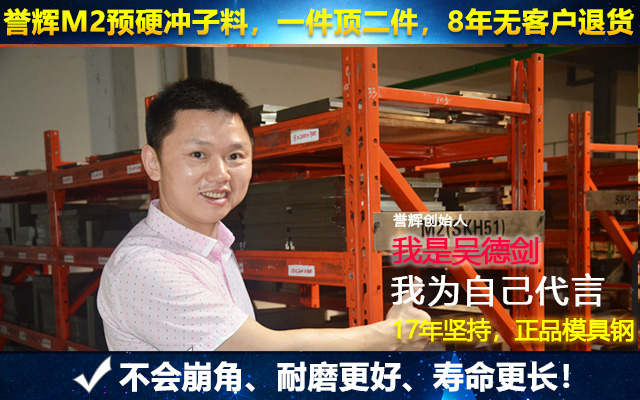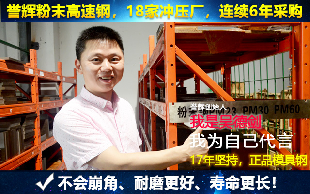 譽(yù)輝SKH-9高速鋼,一件頂兩件。譽(yù)輝模具鋼的預(yù)硬料堅(jiān)持不與同行拼價(jià)格;堅(jiān)持使用正品SKH-9高速鋼,經(jīng)過(guò)光板加工+高壓真空熱處理+超深冷處理+高溫4次回火+六面精磨;陽(yáng)江不銹鋼餐具的五金沖壓模具沖頭多年來(lái),一直選用譽(yù)輝公司的預(yù)硬沖子料SKH-9高速鋼,沖頭壽命增加1倍。廈門(mén)電子開(kāi)關(guān)臺(tái)灣廠(chǎng),選用譽(yù)輝公司的預(yù)硬沖子料SKH-9高速鋼后,模具維修率變低,模具維修人員直接減半。