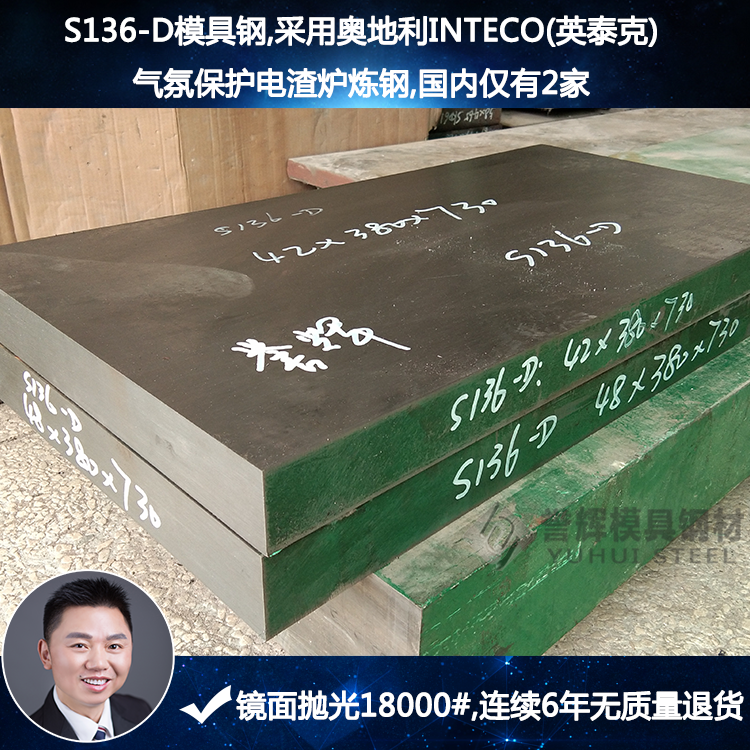 譽輝S136-D模具鋼的煉鋼設備是絕對的與眾不同,采用奧地利INTECO(英泰克),是氣氛保護電渣爐煉鋼,提純工藝明顯優(yōu)于同行,有害雜質(zhì)硫S含量低至0.0005%,達無硫級。材料純凈度高,成就18000#的鏡面拋光效果。雖然S136-D模具鋼鏡面拋光效果與洋品牌不相上下,但售價卻要低30%。