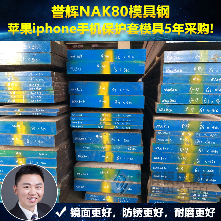 東莞譽(yù)輝作為蘋果iphone手機(jī)保護(hù)套模具多年供應(yīng)商,已經(jīng)連續(xù)第5年為蘋果iphone手機(jī)保護(hù)套模具提供NAK80模具鋼,并且連續(xù)5年無(wú)質(zhì)量投訴。東莞京瓷也連續(xù)6年,采購(gòu)譽(yù)輝NAK80模具鋼。還有10幾家塑膠外殼制品廠,都在指定采購(gòu),譽(yù)輝NAK80模具鋼,累計(jì)銷售1000噸,無(wú)一客戶投訴。