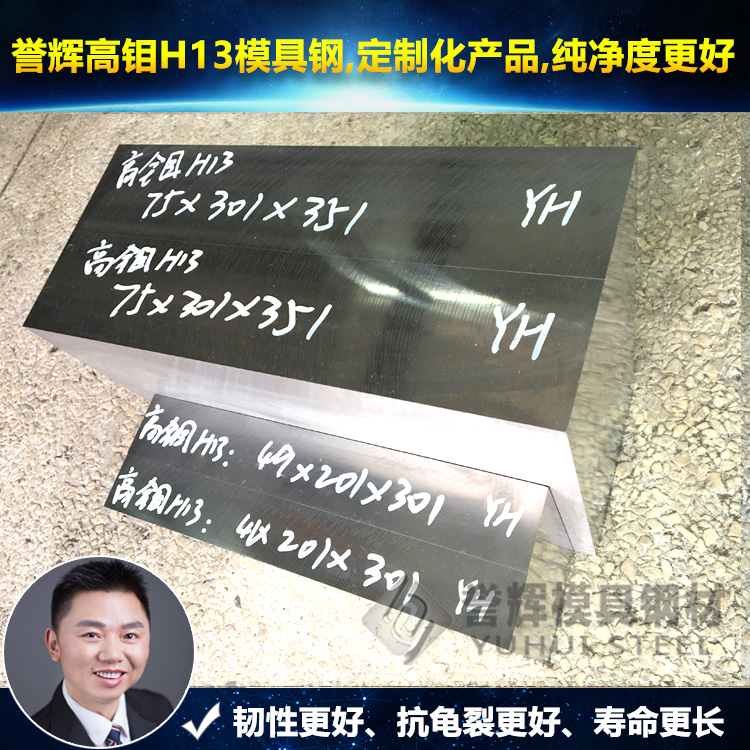 1) 譽輝高鉬H13模具鋼增加了耐磨合金,鉬(Mo)元素含量高達23%。